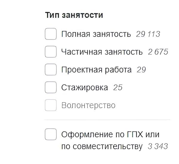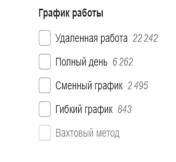 >Вакансий предостаточно. Также вы можете выбирать тип занятости и график работы: