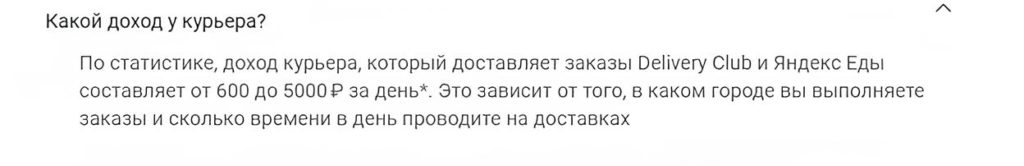 Преимущество такой работы в том, что здесь гибкий график и платят прилично. >На официальном сайте крупнейшего доставщика все хорошо расписано. Вы можете изучить информацию подробно и понять, подходит ли вам данная подработка или нет.