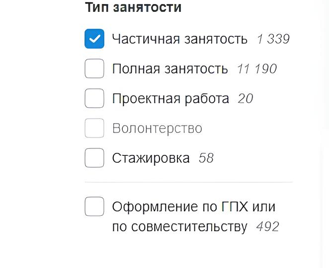 Следующие варианты подработки будут более высокооплачиваемыми, но вместе с тем и сложными. Речь идет о работе в неполную смену. Поэтому при поиске работы на специализированных ресурсах (например, на hh.ru) сразу выставляйте данный параметр: