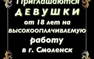 Приглашаются девушки на Высокооплачиваемую работу в г. Смоленск