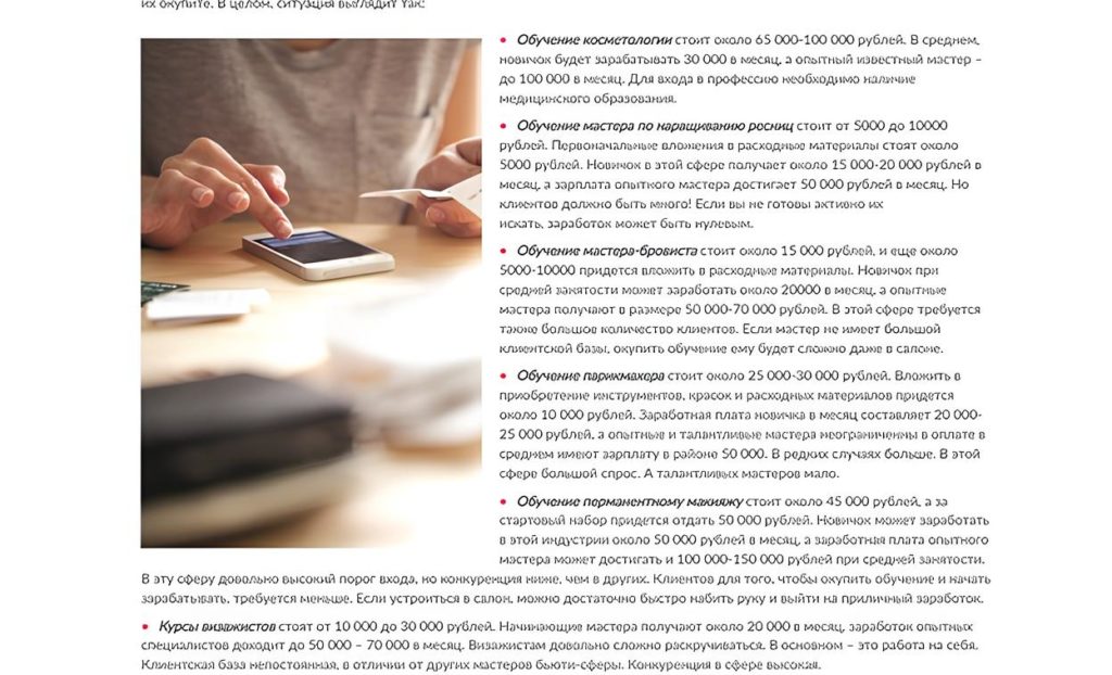 высокий спрос (в каждом населенном пункте нужны специалисты в бьюти-сфере);