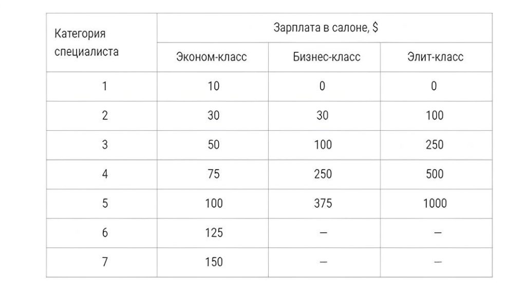 Заработная плата зависит от многих факторов. Главные: регион проживания, класс заведения, уровень мастерства, специализация, обширность клиентской базы и стоимость расходных материалов. Вот примерный оклад профессионалов различных уровней (в долларах за полную рабочую смену):