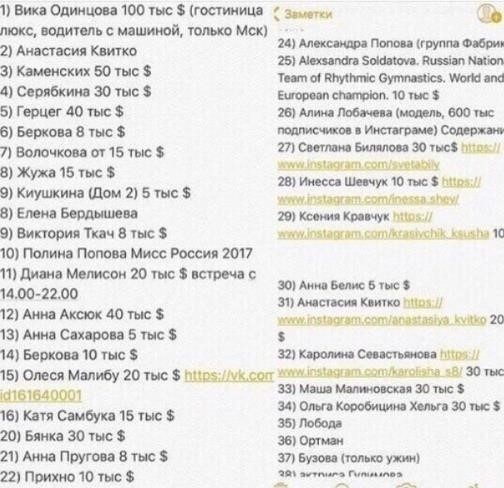 Сразу скажем, что речь идет о слухах. Ни один блогер, певица или модель не признаются, что подрабатывают эскортом. Однако портал Seldon.News несколько лет опубликовал сенсационную новость, как известные российские девушки зарабатывают на эскорт-услугах. Например, красавица Ольга Серябкина, по данным агентства, зарабатывает порядка 30 тысяч долларов за одну ночь с клиентом. Вот более подробный список: